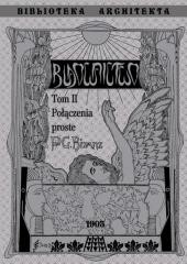 "Drugi tom z pięciu na temat budownictwa, przepisany z rękopisów z 1903 roku. Zawiera informacje dotyczące połączeń prostych z drzewa- połączeń dla przedłużenia, powiększenia belek, połączeń pod kątem i różnych wiązań; połączeń z kamienia i cegieł, narzędzi murarskich murów i wiązań cegieł jak również połączeń prostych z żelaza i różnych jego sposobów. Cała seria "Budownictwo" Bisanza to aktualny po dzień dzisiejszy zbiór informacji i podstaw budownictwa, przydatny dla architekta."