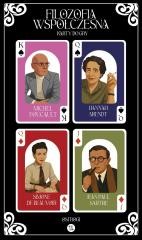 Karty do gry "Filozofia współczesna" to karciana gra edukacyjna mająca na celu możliwość zapoznania z najważniejszymi filozofami, filozofkami oraz ideami XX i XXI wieku. Karty ukazują sylwetki najwybitniejszych filozofów światowj rangi oraz idee filozoficzne, które rządziły i rządzą współczesnym światem, i które stanowiły najważniejsze nurty myślowe w filozofii i myśli współczesnej. Karty dają możliwość gry w kilkadziesiąt gier i zabaw edukacyjnych. Ilość kart: 56 w talii, w osobnym opakowaniu.