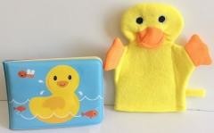 Seria obrazkowych książeczek kąpielowych, wykonanych z grubej folii wypełnionej gąbką. Piękne kolorowe ilustracje zwierzątek zachęcą dzieci do poznawania otaczającego je świata. Książeczki zapakowane w foliową torebkę z headerkiem z eurodziurką. Do książeczek dołączona została mała frotowa myjka dla dziecka.