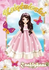 Księżniczki - książeczka do kolorowania z zadaniami dla dzieci. W środku duża wkładka z naklejkami