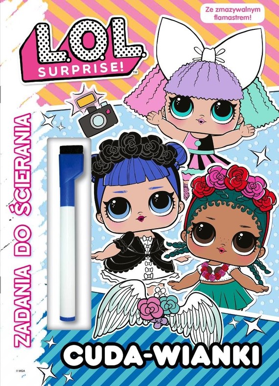 Dzięki ścieralnemu flamastrowi zabawa z L.O.L. SUPRISE! nigdy się nie kończy! W tej książce będziesz tworzyć, projektować i rysować,a gdy użyjesz gąbki, będziesz mogła tworzyć, projektować i rysować od nowa. Kosmos, co nie?! Psiapsiółki ze wszystkich klubów życzą Ci czadowej zabawy!