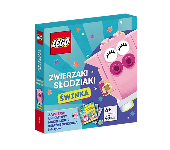 W zestawie: klocki LEGO®, z których można zbudować modele pupili wraz z akcesoriami – pieska rasy corgi lub słodką świnkę, przewodnik opiekuna z zadaniami, a także mnóstwem inspiracji do zabawy ze zwierzaczkiem z wykorzystaniem przedmiotów, które można znaleźć na swoim biurku (a także samej książki), karty do zbudowania akcesoriów dla pupila (np. buda dla pieska, rakieta kosmiczna dla świnki), naklejki, dzięki którym przygody słodkich zwierzątek będą jeszcze bardziej kolorowe, format: pudełko 204 x 270 mm I książka 48 stron