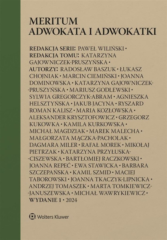 Poradnik przedstawia wszystkie praktyczne aspekty wykonywania zawodu adwokata w Polsce. Jest dziełem ponad 30 autorek i autorów - wybitnych specjalistów, przedstawicieli tej profesji. Z "Meritum adwokata i adwokatki" dowiesz się między innymi: Jak założyć i prowadzić kancelarię? Publikacja zawiera praktyczne wskazówki, w których autorzy dzielą się swoim doświadczeniem i radzą, jak skutecznie zarządzać kancelarią adwokacką. Jak podejmować skuteczne działania marketingowe? Poruszone są zagadnienia związane z reklamą i działalnością marketingową w praktyce zawodowej, w tym w mediach społecznościowych. Omówione są także wskazówki, co klientów motywuje do podjęcia współpracy z kancelarią a co stanowi dla nich barierę. Jak ustalać systemy wynagrodzenia z klientami? Autorzy omawiają różne modele wynagradzania i podpowiadają, jakie rozwiązania są najkorzystniejsze (m. in. stawka godzinowa, ryczałt, system ryczałtowo-godzinowy, stałą opłata za sprawę, success fee). Jak wdrożyć i stosować procedury AML (Anti Money Laundering)? Poradnik wskazuje podstawowe regulacje oraz gdzie można znaleźć wzory procedur i oświadczeń oraz jakie kary grożą za niewykonanie obowiązków nałożonych ustawą (m. in. w przypadku adwokatów do wysokości równowartości kwoty 1 000 000 euro). Jak skutecznie zadbać o bezpieczeństwo danych w kancelarii? Autorzy wyjaśniają jakie konkretne środki techniczne i organizacyjne należy wdrożyć aby wypełnić obowiązki nałożone prawem. Wskazują jak w praktyce należy chronić dane przetwarzane zarówno w formie papierowej jak i elektronicznej. Autorzy dużo uwagi poświęcają researchowi prawnemu. Przedstawiają wskazówki, jak skutecznie pozyskiwać informacje zarówno z publicznych baz danych, jak i komercyjnych systemów informacji prawnej. Szczegółowo omawiają ponadto: postępowanie dyscyplinarne, zasady reprezentacji klientów wyznaczonych z urzędu w różnych kategoriach spraw, reprezentację dziecka oraz występowanie jako kurator dla osoby nieznanej z miejsca pobytu, praktyczne aspekty świadczenia nieodpłatnej pomocy prawnej, metodykę prowadzenia spraw z zakresu wielu dziedzin prawa, reprezentację klientów przed Europejskim Trybunałem Praw Człowieka i Trybunałem Sprawiedliwości UE. Publikacja jest przeznaczona przede wszystkim adwokatek i adwokatów już prowadzących lub rozpoczynających działalność zawodową, a także dla aplikantów prawniczych; zainteresuje również przedstawicieli innych zawodów prawniczych, którzy planują podjąć nowe wyzwania zawodowe. "Nikt wcześniej nie zdecydował się na przygotowanie pozycji, która podejmowałaby te zagadnienia, i to w tak szerokim zakresie. Odnajdą bowiem Państwo w publikacji kompleksową wiedzę o zasadach funkcjonowania samorządu zawodowego, przebiegu aplikacji adwokackiej, warunkach wykonywania zawodu, w tym o praktycznych aspektach zakładania, działalności i likwidacji kancelarii adwokackiej. Rozdziały poświęcone metodom prowadzenia określonych spraw, w tym specyfice postępowań z urzędu oraz istocie innych, dodatkowych ról adwokackich, stanowią cenne źródło praktycznych wskazówek. () Informacje o specyfice i różnych formach wykonywania tego zawodu, świadczenia nieodpłatnej pomocy prawnej, funkcji kuratora, arbitra lub mediatora mogą uświadomić Czytelnikom wymagania i bariery w codziennej pracy zawodowej członków i członkiń palestry." Ze wstępu adw. dr Katarzyny Gajowniczek-Pruszyńskiej