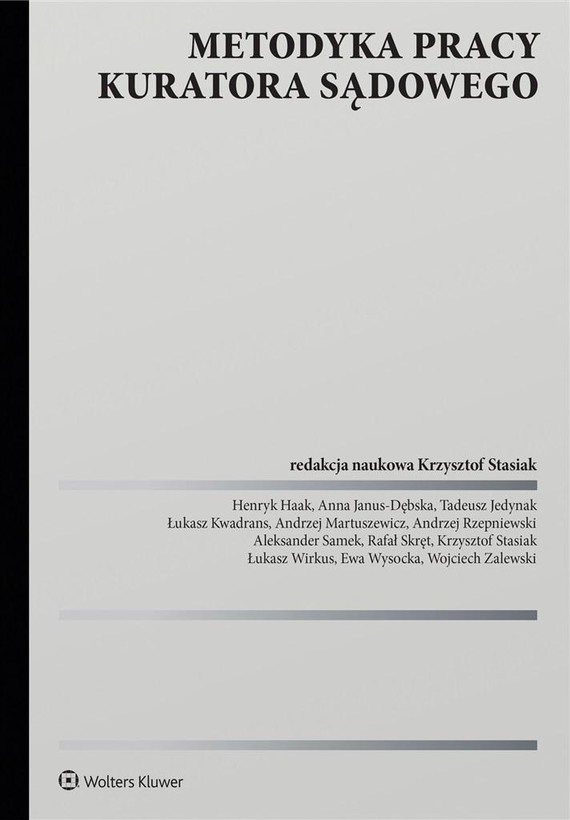 Publikacja stanowi kompendium wiedzy na temat kurateli sądowej. Jako jedyna na rynku wydawniczym w sposób kompleksowy omawia wszystkie wykonywane przez kuratorów sądowych zadania oraz przedstawia sposoby ich realizacji. Zostały w niej ukazane również początki tej instytucji, jej rozwój oraz ustrój. Zagadnienia te zaprezentowano przede wszystkim w kontekście prawnym, ale nie pominięto wybranych metod pracy pedagogicznej, które kuratorzy stosują w trakcie wykonywania części obowiązków. W opracowaniu można znaleźć ponadto odpowiedzi na wiele pytań, które pojawiają się w codziennej pracy kuratora. Książka jest przeznaczona dla kuratorów sądowych, aplikantów kuratorskich, pracowników naukowych oraz studentów wydziałów pedagogiki, prawa, socjologii i psychologii, a także sędziów, prokuratorów i innych osób współpracujących z kuratorami.