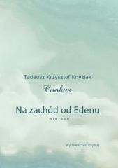 Na zachód od Edenu szósta autorska książka Tadeusza Krzysztofa Knyziaka z Warszawy autora piszącego pod pseudonimem Coobus. Całość składa się z trzech części: CZĘŚĆ I. Jesienny, CZĘŚĆ II. Morze pozornie czerwone, CZĘSĆ III. Poprzez znoszone szkła. Obecny zbiór wierszy autor zadedykował swojej żonie Ewie, z podziękowaniem za 50 lat wspólnego Edenu (1972 2022). Podobizny pani Ewy zrobione i opracowane przez autora zdobią strony książki nadając całości szczególny przekaz. Na końcowych stronach książki czytelnik ma możliwość bliższego poznania autora, który w tekście zatytułowanym Żebro Coobusa prowadzi dialog/wywiad sam z sobą. A tak w kilku zdaniach o autorze i jego pasji pisania pisze dwoje zaprzyjaźnionych z autorem osób: