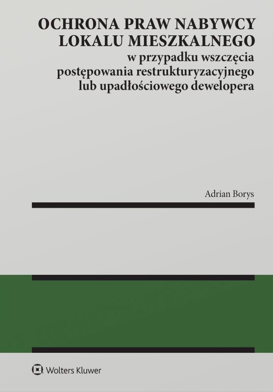 Monografia zawiera kompleksowe opracowanie problematyki postępowania restrukturyzacyjnego i upadłościowego dewelopera, ze szczególnym uwzględnieniem sytuacji prawnej nabywców lokali mieszkalnych. Autor łączy dogmatyczną analizę przepisów z oceną ich efektywności ekonomicznej, tworząc praktyczny przewodnik dla profesjonalistów.