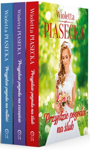 Trylogia Przyjdzie pogoda na… w komplecie: Przyjdzie pogoda na miłość , Przyjdzie pogoda na szczęście i Przyjdzie pogoda na ślub . Pełna emocji historia trzech przyjaciółek, z których marzeń zadrwił los. Młode kobiety zderzają się z brutalnością dorosłego życia. Czy odnajdą w sobie siłę, by podnieść się po bolesnym upadku? Czy potrafią zaufać sobie i innym, kiedy przyjdzie pogoda na miłość? Wioletta Piasecka zdaje się mówić, że wszystko ma swój czas. Po burzy wychodzi słońce, a więc mimo zawiedzionych nadziei, cierpienia i konsekwencji błędnych decyzji zawsze trzeba szukać nowych szans i walczyć o swoje szczęście.