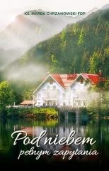 Pod niebem pełnym zapytania to książka, która zaprasza nas do zamieszkania w małym przytulnym Hoteliku dla dwojga. Można znaleźć sobie miejsce w ciepłym salonie, przy kominku albo na oszklonym tarasie. Pani Ania przyniesie ciepłą kawę i świeżo upieczone ciasto. I z naszego wybranego miejsca obserwować będzie można bohaterów dwunastu opowieści, którzy na chwil parę zamieszkali w hotelu, by odpocząć od codzienności, zatrzymać się na moment albo po prostu poczytać dawno zapomnianą a zamkniętą w sercu poezję. Kto wie, może nawet uda się nam zaprzyjaźnić z właścicielami tego hotelu: panem Maurycym i Magdą.