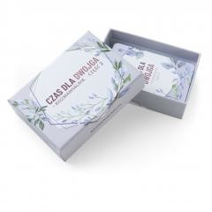 CZAS DLA DWOJGA - ROZMAWIALNIK, CZ.2 to nowy zestaw pytań po części 1, które pomogą pogłębić relację małżeńską lub narzeczeńską. Rozmawialnik to kieszonkowe pudełko z 40 kartami z pytaniami, które mają pobudzić do głębszych rozmów, wyrażających prawdziwe zainteresowanie drugim człowiekiem. Już od kilku lat zauważamy, że relacje przeniosły się w dużej mierze ze świata realnego do wirtualnego. Czas pandemii jeszcze bardziej to pogłębił. Każdy człowiek został stworzony do relacji - jest to mu niezbędne do zachowania zdrowia fizycznego, psychicznego i życia w pełni. A relacje żyją rozmową. Nasza akcja jest odpowiedzią na te wyzwania. ROZMAWIALNIK W PRAKTYCE, czyli jak możesz z tego korzystać? > Jesteś żoną/mężem? Wyobraź sobie miłą randkę, na którą do kieszeni zabierzecie "Czas dla Dwojga - Rozmawialnik", by ten cenny czas sam-na-sam spędzić nie na omawianiu spraw bieżących, ale na głębokich rozmowach i jeszcze lepiej zrozumieć współmałżonka. Dodatkowe informacje Wymiary pudełka: 10.5cm x 7.5cm x 2cm Pudełko ze sztywnej tektury 40 kart w pełnym kolorze Przyjemne w dotyku wykończenie soft-touch Instrukcja Zestaw kart zafoliowany ISBN: 978-83-66681-51-4 EAN: 9788366681514