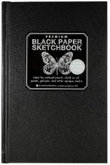 Szkicownik z czarnymi kartkami, idealny do rysunków kredą, pastelami olejnymi, długopisami żelowymi i podobnymi materialami. Zszywany, twarda okładka, czarny papier gładki, ciężki, o gramaturze 110g/cm2. Kartki mikroperforowane - przez co można je łatwo oderwać z notesu. 192 strony. Mały format 14,6x22,2 cm.