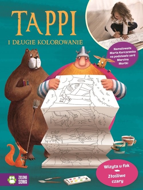 W Szepczącym Lesie zawsze dzieje się coś ekscytującego. Tym razem ktoś wykradł z niego wszystkie kolory! Weź do ręki kredki lub farby i przywróć barwy Tappiemu i jego przyjaciołom. Czeka Cię dłuuuuga zabawa!Wyjątkowe, dwustronne kolorowanki w formie harmonijki, wzbogacone krótkimi tekstami, dla wszystkich fanów książek o wikingu Tappim. W każdej kolorowance znajdują się dwie historyjki do pokolorowania, oparte na opowiadaniach z serii „Tappi i przyjaciele”.Dzieci mogą kolorować czarno-białe ilustracje według własnego uznania, kierując się wyobraźnią i tekstem czytanym przez rodzica."