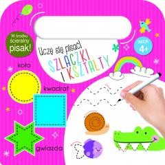Dzięki tej niezwykłej książce dziecko poćwiczy rączkę, rysując linie proste, faliste, zygzaki, pętelki. Odkryje też kształty, dopasowując je do kolorowych obrazków, a potem kreśląc po śladzie. Zadanie ułatwi mu ścieralny pisak i odpowiednio przygotowane kartonowe strony. Czeka go mnóstwo kształcącej zabawy!