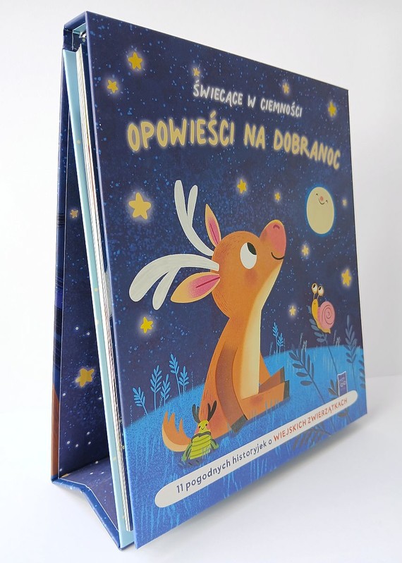 Na stronach sąsiadujących  z historyjkami znajdują się obrazki, które po zgaszeniu światła będą świeciły dla twojego maluszka. Wystarczy, że naświetlisz je lampą w czasie czytania,  a po skończonej lekturze pozostawisz książeczkę przy łóżeczku.