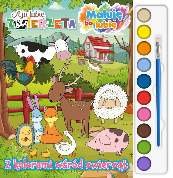 A ja lubię zwierzęta Maluję bo lubię: urocze zwierzęta zapraszają do wspólnej zabawy kolorami, która rozwinie kreatywność i sprawność manualną dziecka. To idealna propozycja dla małych artystów! Wystarczy dodać barw ulubionym postaciom, by stworzyć piękne obrazki. Do książki dołączona jest paleta z 10 kolorowymi farbami i pędzelek.
