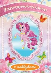 Zaczarowany świat - książeczka do kolorowania z zadaniami dla dzieci. W środku duża wkładka z naklejkami