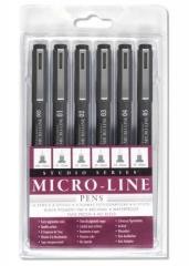 Czarne cienkopisy z solidnymi końcówkami (005-.20mm , 01 - ,25mm , 02 - ,30mm , 03-,35mm , 04-,40mm , 05-.45mm), dzięki którym linie są zawsze mocne i wyraziste. Końcówki zachowują swoją wytrzymałość nawet przy intensywnej eksploatacji. Zestaw zawiera: 6 cienkopisów na bazie wody, poręczne plastikowe etui.