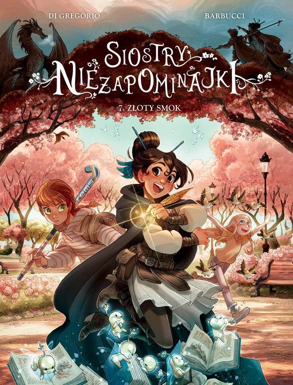 Najnowszy tom mądrej, zaskakującej i wzruszającej opowieści o trzech siostrach Niezapominajkach. Dziewczynki są bardzo zajęte. Sara gra w turnieju sportowym, Kasjopeja pisze opowiadanie na konkurs, a Lucilla pomaga w schronisku dla zwierząt. I właśnie wtedy orientują się, że z miejskiego parku zniknęła rzeźba smoka, którą uznawały za totem swojego Klubu Trzech Sióstr! Kto ją ukradł? Rozpoczynają śledztwo, które doprowadzi je do ciekawych wniosków na temat tak ważnych spraw jak ambicja, osiąganie celu i przyjaźń. Może też uda im się uratować dzielnicową księgarnię, a wraz z nią prawdziwą magię słów?